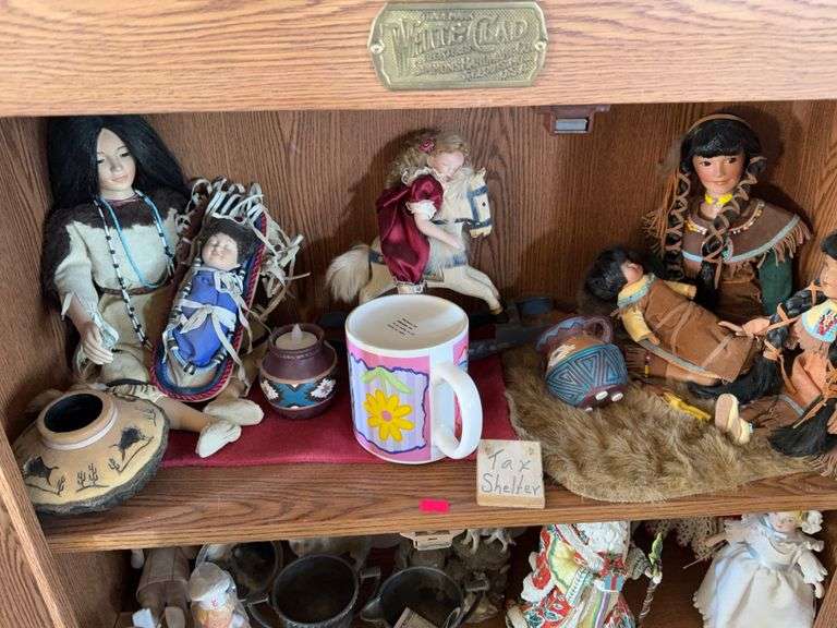 LOT 43 - Contents of shelf, Native American, figurines, and items